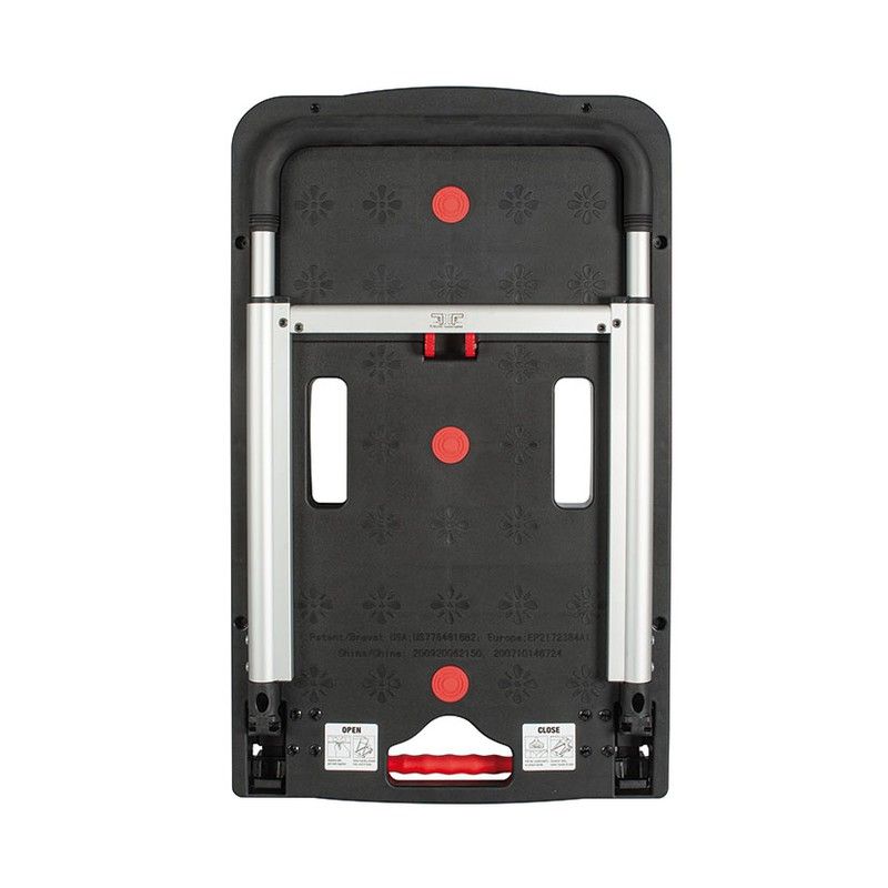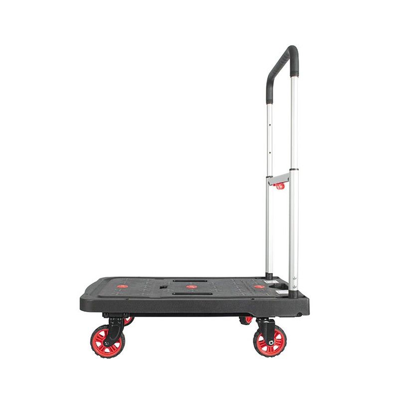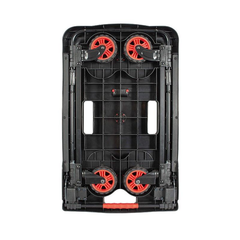 Carretó amb plataforma plegable d'alumini. Estructura de polipropilè i alumini. 4 rodes de goma sintèntica TPR. Mànec ajustable. Molt compacta.