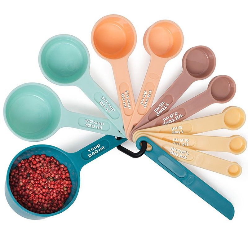 Plàstic lliure de BPA. Apilables. 4 colors. Apte rentaplats. Cullera: 1,25, 2,5, 5, 7,5, 15, 30, 60, 80, 120, 240 ml. + 1 anivellador.
